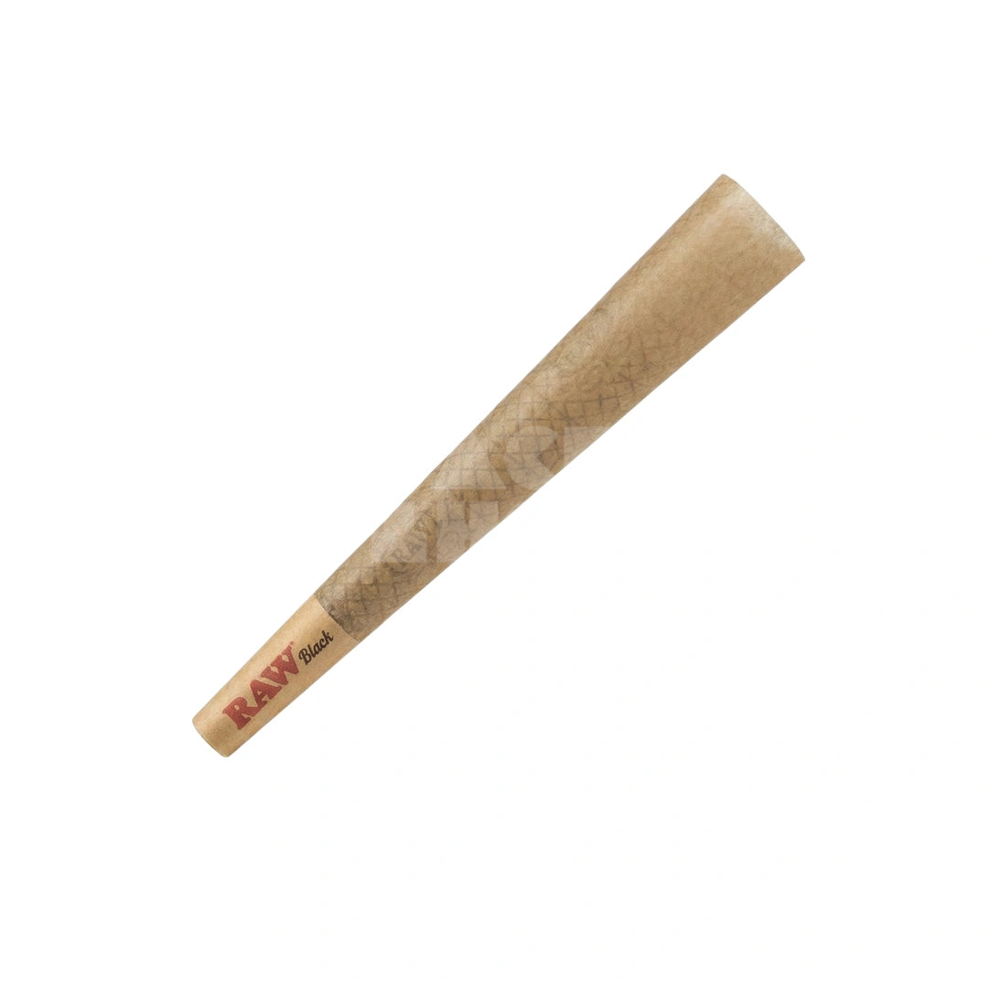 • King Size pre-rolled cones in signature black RAW paper.